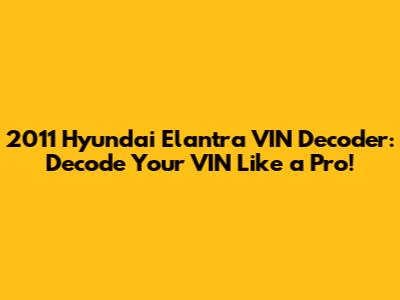 Ever wondered what secrets your 2011 Hyundai Elantra is hiding? Well, guys, the Vehicle Identification Number (VIN) is the key to unlocking a treasure trove of information about your ride. Think of it as your Elantra's DNA! Decoding your VIN can reveal everything from where it was manufactured to what kind of engine it’s packing. This guide will walk you through the process step-by-step, making you a VIN decoding pro in no time. Let's dive in and uncover all the juicy details your 2011 Elantra has to offer!