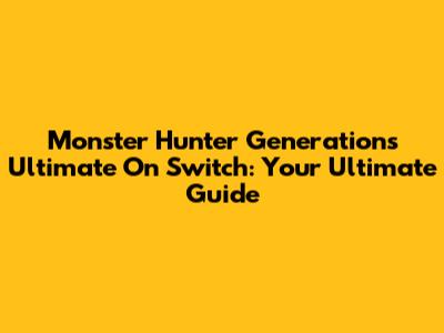 Monster Hunter Generations Ultimate On Switch: Your Ultimate Guide