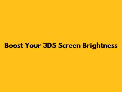 Boost Your 3DS Screen Brightness