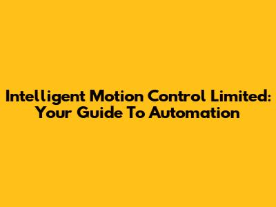 Intelligent Motion Control Limited: Your Guide To Automation
