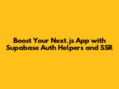 Hey everyone! Are you ready to dive into the world of Supabase, Next.js, and how to make user authentication a breeze? Well, you're in the right place! We're going to explore how supabaseauthhelpersnextjs and supabasessr can supercharge your Next.js applications. This guide will cover everything from setting up user login to managing secure applications using the power of Server-Side Rendering (SSR). Forget about the authentication headaches; let's make your app secure, fast, and user-friendly. We'll break down the concepts, provide practical examples, and ensure you're well-equipped to integrate these powerful tools.