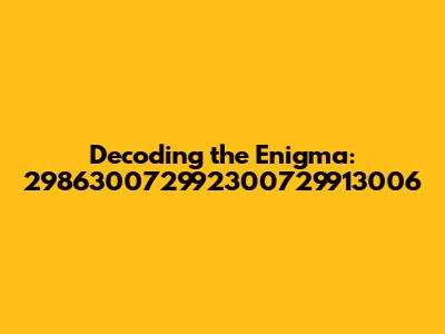Let's break down some of the likely scenarios where you might encounter a number like 298630072992300729913006 and how to approach understanding its significance.