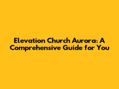 Hey everyone! Are you looking for a church home in Aurora, Colorado? Well, you might have heard of Elevation Church Aurora, and if you haven't, you're in for a treat! This guide is designed to give you the lowdown on everything you need to know about this vibrant church community. We'll dive into what makes Elevation Church tick, what you can expect when you visit, and why it might just be the perfect place for you to connect, grow, and make a difference. So, grab your coffee (or tea!), and let's get started.