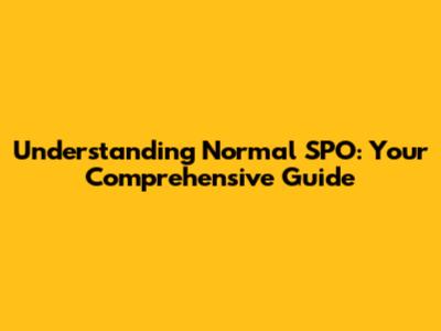 Understanding Normal SPO: Your Comprehensive Guide