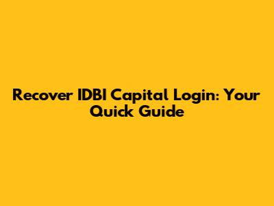 Recover IDBI Capital Login: Your Quick Guide
