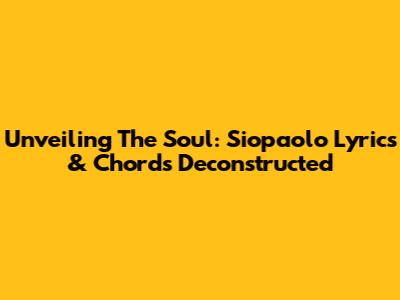 Unveiling The Soul: Siopaolo Lyrics & Chords Deconstructed
