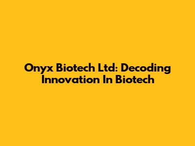 Onyx Biotech Ltd: Decoding Innovation In Biotech