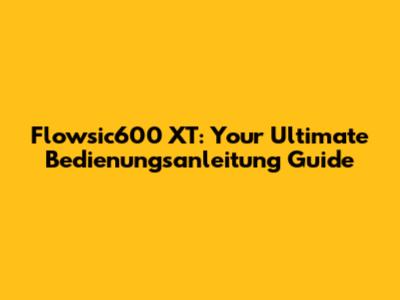 Flowsic600 XT: Your Ultimate Bedienungsanleitung Guide
