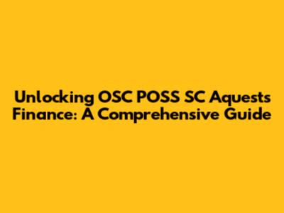 Unlocking OSC POSS SC Aquests Finance: A Comprehensive Guide