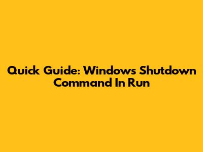 Quick Guide: Windows Shutdown Command In Run