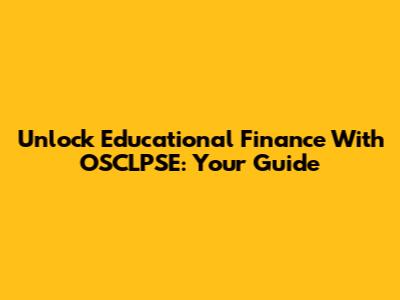 Unlock Educational Finance With OSCLPSE: Your Guide