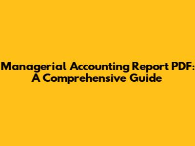 Hey guys! Ever felt lost in the world of managerial accounting reports? You're not alone! These reports are super crucial for making smart decisions within a company. They're different from financial accounting reports, which are mainly for people outside the company, like investors and creditors. Managerial accounting reports are all about helping managers inside the company do their jobs better. Let's dive into what makes these reports tick and how you can get your hands on some helpful PDF resources. Think of managerial accounting as the secret sauce that helps businesses run smoothly. It involves gathering, analyzing, and interpreting financial data to help managers make informed decisions. Unlike financial accounting, which focuses on external reporting, managerial accounting is all about internal use. This means the reports are tailored to the specific needs of the company and its various departments. The main goal? To provide insights that improve efficiency, reduce costs, and boost profitability. Now, let's talk about the different types of managerial accounting reports you might encounter. Some common ones include cost reports, budget reports, performance reports, and variance analysis reports. Each type serves a unique purpose and provides different types of information. For example, a cost report might break down the costs associated with producing a particular product, while a budget report compares actual results to planned targets. Performance reports, on the other hand, evaluate the performance of different departments or individuals within the company. And variance analysis reports help identify and explain deviations from the budget. Getting your hands on a managerial accounting report in PDF format can be a game-changer. PDFs are easy to share, print, and read on any device. Plus, they often contain interactive features like hyperlinks and bookmarks, making it easier to navigate the document. Whether you're a student, a manager, or an accountant, having access to these resources can help you better understand and apply managerial accounting principles.