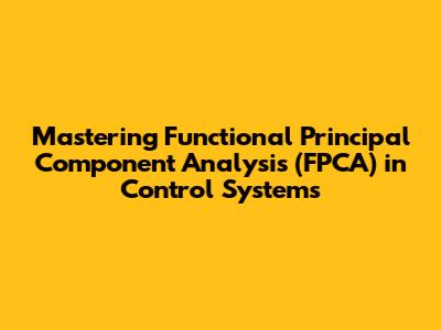 Hey guys! Ever heard of Functional Principal Component Analysis (FPCA)? Sounds super technical, right? Well, it is, but don't worry, we're going to break it down. Think of it as a powerful tool, a secret weapon if you will, that can help you understand and control complex systems in ways you never thought possible. We're talking about taking loads of data, spotting hidden patterns, and using those insights to make smarter decisions, especially in the world of control systems. This guide is all about getting you up to speed on FPCA, its benefits, and how it can revolutionize how we design and manage complex systems. We'll start with the basics, explain why FPCA is such a big deal, and then dive into some practical applications and examples to show you how it works in the real world. So, whether you're a seasoned engineer or just curious about the future of control systems, buckle up because we're about to explore the awesome world of FPCA! Let's get started. Get ready to have your mind blown (in a good way)!
