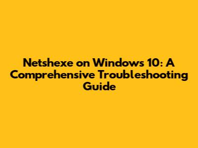 By following these steps, you should be able to diagnose and resolve most netshexe-related issues on your Windows 10 system. Remember to be patient and methodical, and don't hesitate to seek further assistance if the problem persists.