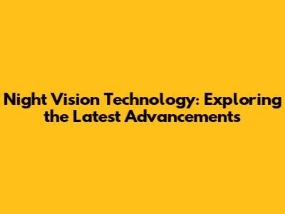 Understanding Night Vision Technology