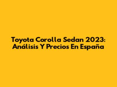 Toyota Corolla Sedan 2023: Análisis Y Precios En España