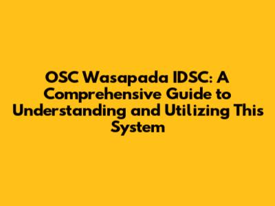 What Exactly is OSC Wasapada IDSC?