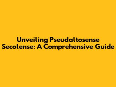 Unveiling Pseudaltosense Secolense: A Comprehensive Guide