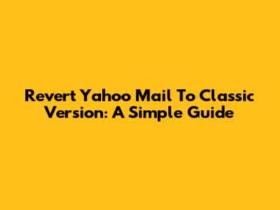 Revert Yahoo Mail To Classic Version: A Simple Guide