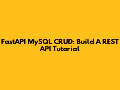FastAPI MySQL CRUD: Build A REST API Tutorial