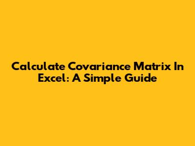 Calculate Covariance Matrix In Excel: A Simple Guide
