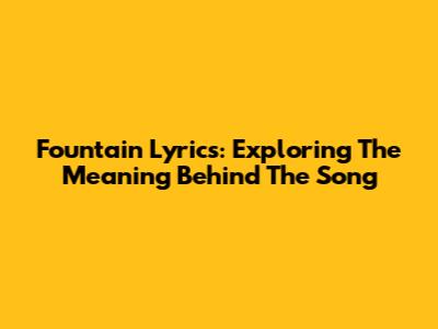 Fountain Lyrics: Exploring The Meaning Behind The Song