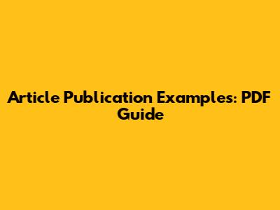 Article Publication Examples: PDF Guide