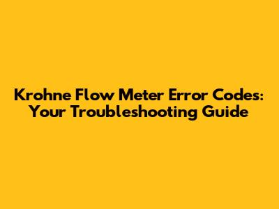 Krohne Flow Meter Error Codes: Your Troubleshooting Guide