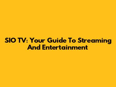 SIO TV: Your Guide To Streaming And Entertainment