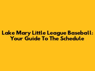 Lake Mary Little League Baseball: Your Guide To The Schedule