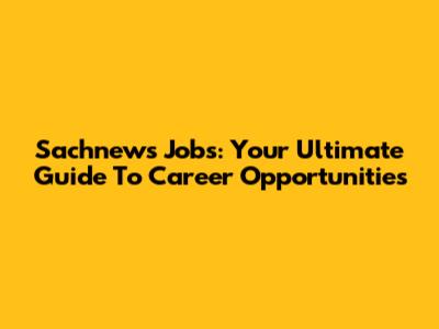 Sachnews Jobs: Your Ultimate Guide To Career Opportunities
