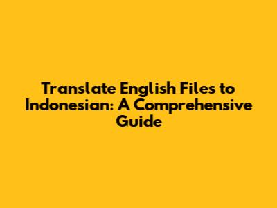 Hey guys! Ever found yourself staring at an English document, wishing you could instantly understand it in Indonesian? Well, you're in the right place! This guide is all about how to translate English files to Indonesian, covering everything from simple text documents to more complex file formats. We'll explore various methods, tools, and tips to make the translation process smooth and efficient. So, let's dive in and unlock the secrets of translating English files to Indonesian! This will cover translating english files to Indonesian and how you can do it.