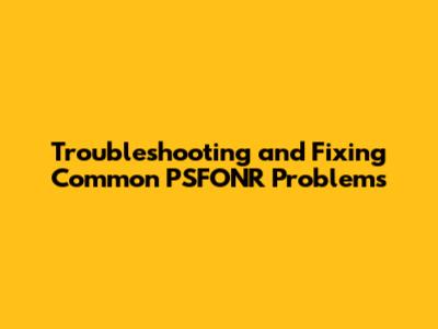 Practical Solutions: Step-by-Step Fixes for PSFONR Issues