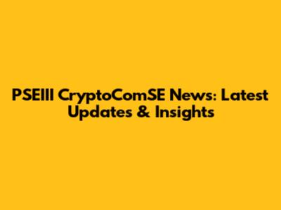 PSEIII CryptoComSE News: Latest Updates & Insights