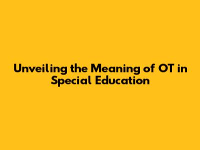 Hey everyone! Ever heard the term OT in special education and wondered what it means? Well, you're in the right place! We're going to break down the meaning of OT and explore how it plays a super important role in helping kids with special needs. Basically, OT stands for Occupational Therapy, and it's a field dedicated to helping individuals participate in the things they need and want to do through the therapeutic use of everyday activities. Sounds pretty cool, right? Let’s dive deeper into the world of Occupational Therapy in special education!